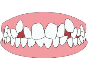 牙列间隙牙齿间缝隙多,易食物嵌塞导致牙周问题,易患龋齿